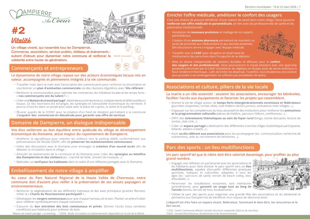 Programme de la liste de "Dampierre au Coeur"